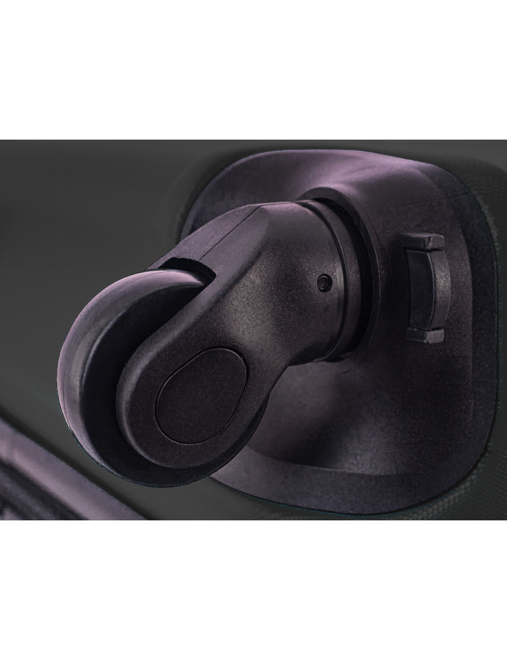 Les valises sont dotées de quatre roues rotatives en caoutchouc, offrant une maniabilité fluide sur tout type de surface, sans effort. Les poignées ergonomiques (latérale et supérieure) avec finition en néoprène assurent une prise en main confortable même en cas de port manuel.